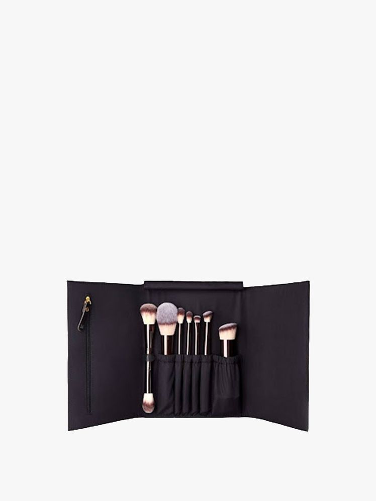 - Why we love it: Bisbal sees the Hourglass travel set as the gateway to optimal makeup. “This set is particularly beautifully designed so you can make a decision during the buying process,” she says. Professional makeup artist Cass Lee is also a fan. “I love the Hourglass Brush Travel Set because it has everything you need and the dual-ended brush is so convenient!” explains Lee. The vegan brush is made from high-quality Taklon bristles, known for their ultra-soft texture. Meanwhile, the bronze vegan leather not only looks stylish, but also hides each brush in a tiny sleeve.