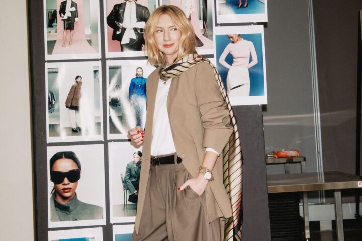But, as always, the actor knows that the key to a Canadian tuxedo—and the key to any successful outfit—is accessories. Lawrence kept cool in round wire-frame sunglasses and carried a Hermès Lindy coffee bag. She ditched the neutrals (because, yes, denim is a neutral) and added a pop of color with a pair of turquoise Khaite ostrich flats.