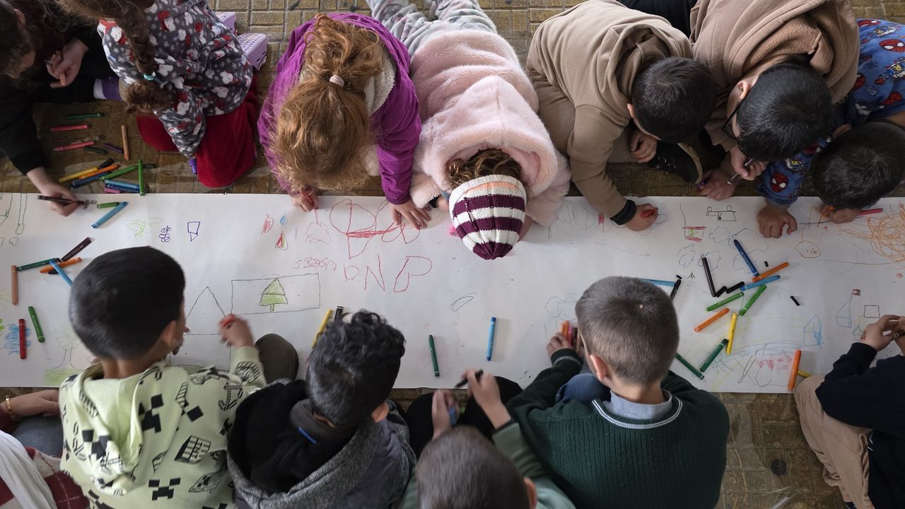 When bombs fell on Lebanon, Lebanese artist Abed Al Kadiri gave dozens of displaced children a “safe, empty space” where they could express themselves artistically and collaborate on a large wartime mural that he hoped to one day display to the public.
