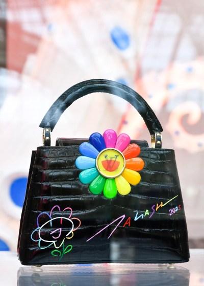 Murakami keeps in mind that all bags are produced in close partnership with the Vuitton style group, and he does not think twice to have fun with Vuitton components, such as splicing the LV logo design in fifty percent on the Capusplit BB or repainting his trademark on the black crocodile natural leather on the Capucines Mini Autograph.