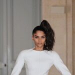There’s no doubt that wardrobe still gives major gangster energy. Call it a gangster glow. In the ostentatious yet wearable category, there were prints with an obvious nod to Versace, and a red tracksuit covered entirely in rhinestones. Elsewhere, he toned down the snake motifs and bling. “I like mean characters, but I want it to be less histrionic,” he said, pointing to several all-black looks that revisited his spare “hourglass” silhouettes, like a silk shirt paired with ultra-A-line pants, now suitable for a sophisticated steakhouse dinner.