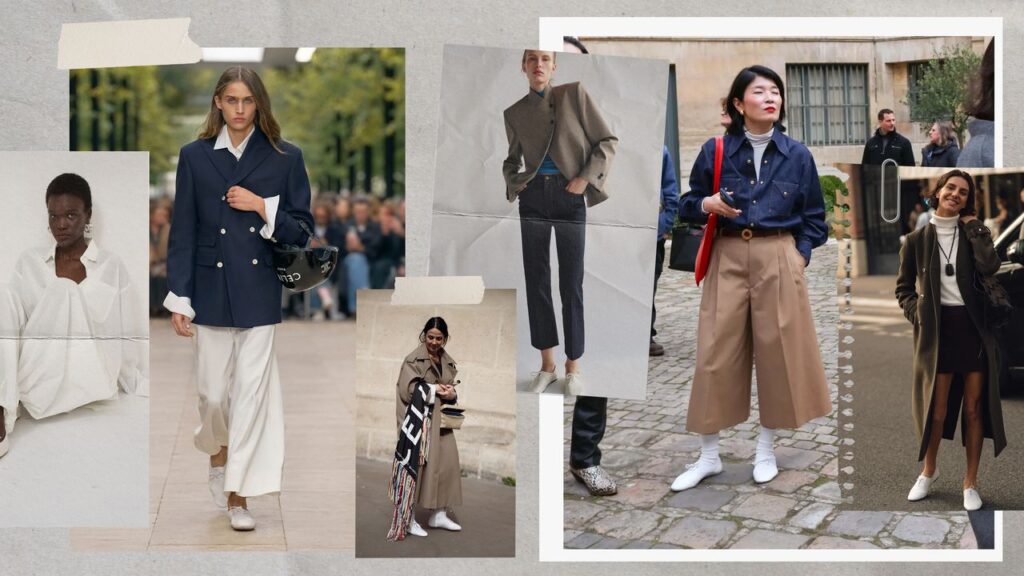A statement skirt is one of the easiest ways to make your outfit look sophisticated. Its versatility is endless, too: style it with a simple white T-shirt and ballet flats by day, or style it with a chic blouse, heels and an evening clutch in the evening. Take a cue from Prada and pair a puffy skirt with a sporty nylon jacket, a crisp poplin button-down shirt and pumps. Or pair a textured skirt with a silk blouse and glove heels, like Chanel. For an effortless look, pair a fringed skirt with a simple leather jacket and sneakers inspired by Loewe. Spring is here, add a transitional jacket and a straw bag for transitional weather.