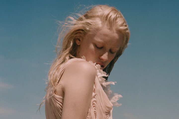 Eva introduced Maia to M&S Schmalberg, “the last remaining maker of handmade fabric flowers in New York’s Garment District, supplying major fashion houses and costume designers,” Maia says. “I went to their studio one afternoon and sorted through boxes of handmade flowers to find one that would complement the light pink embellishment on the dress I chose, which was a vintage David Fielden gown with a very floaty hoop-back detail.” Finally, at the after-party at historic dive bar The Gold Mine Saloon, Maia wore a white leather square-neck Bottega Veneta mini dress.