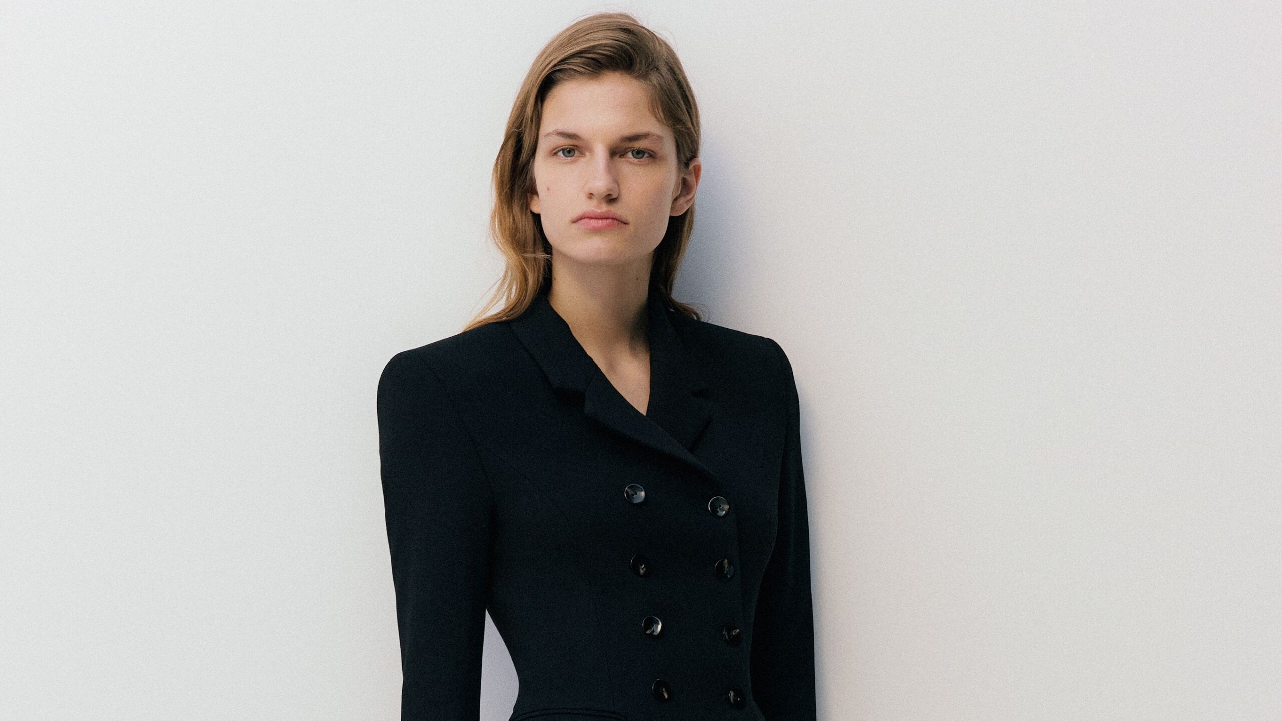 For a woman who can vividly remember the skinny jean style of the ’90s, what’s an age-appropriate way to bring those silhouettes back into her wardrobe? According to Tove’s Camille Perry and Holly Wright, it’s a pair of skinny black wool trousers that flare out just below the ankle to hug you snugly, paired with the brand’s structured double-breasted blazer.