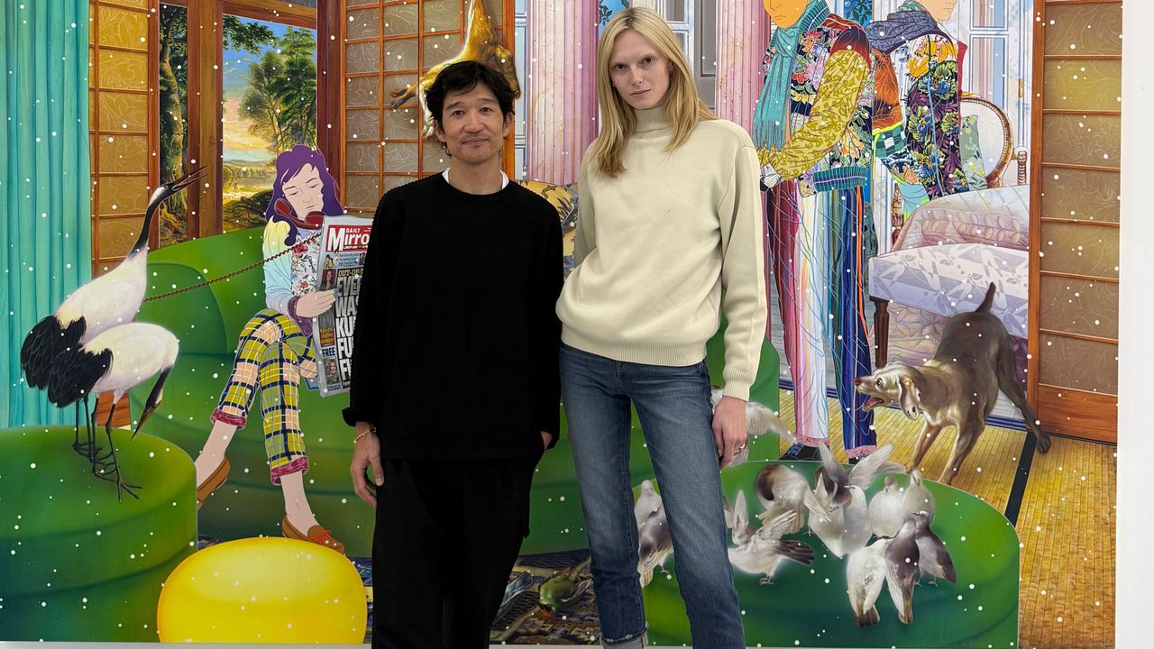 The tradition of oversized sculptures, portraits and paintings is long and storied. Lucian Freud painted a portrait of Kate Moss, Shaun Lean modeled Laura Morgan for Lee Alexander McQueen’s rolled corsets, and Maggie Maurer’s face was emblazoned on Schiaparelli bags. Now, it seems Gen Z fashion model Alex Consani inspired one of the digital characters created for his “Midnight Hour”, Tomokazu Matsuyama (aka Matsu).