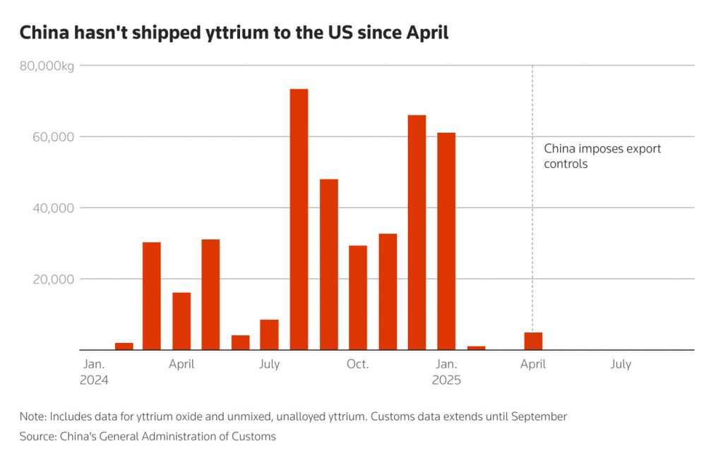 An additional unusual earths situation might be coming as worldwide products of the aspect yttrium decrease because of Chinese export limitations.